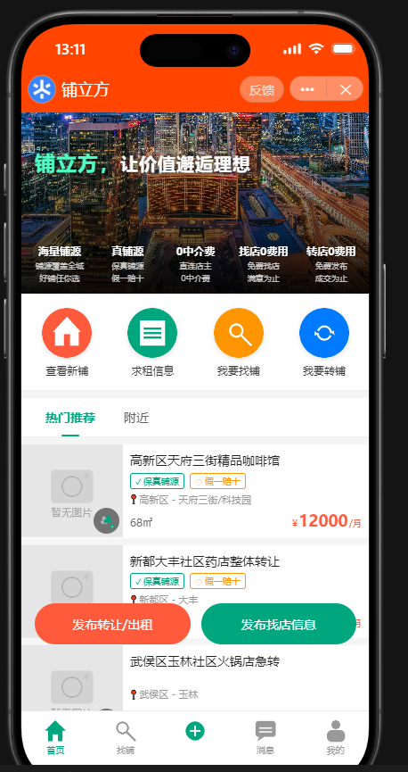 找铺、转铺双向免费,直连店主与承租方,省去中间环节,降低成本。